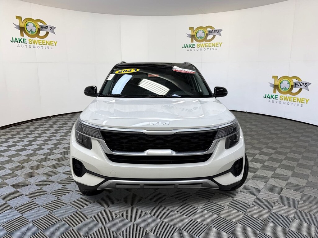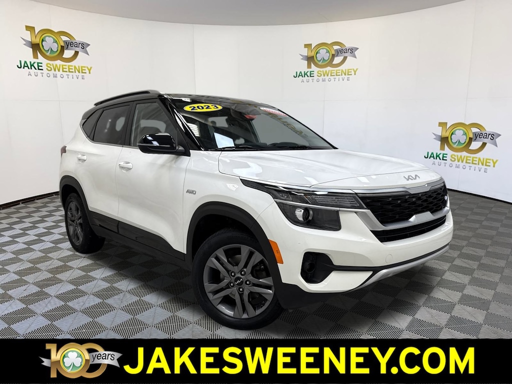 Our One Owner, No Accidents Reported 2023 Kia Seltos S AWD with Navigation is nearly perfect for setting the pace in Clear White with a Black Roof! Powered by a 2.0 Liter 4 Cylinder offering 146hp matched to an intelligent CVT. That delivers everyday capability and more, and our All Wheel Drive SUV makes long road trips easy by returning nearly 31mpg on the highway. This Seltos also sets a high bar for style, featuring LED lighting, fog lamps, a sophisticated black-and-chrome grille, metal-look skid plates, 17-inch alloy wheels, black side sills, matte-black lower-door accents, silver roof rails, and heated power mirrors with built-in turn signals.